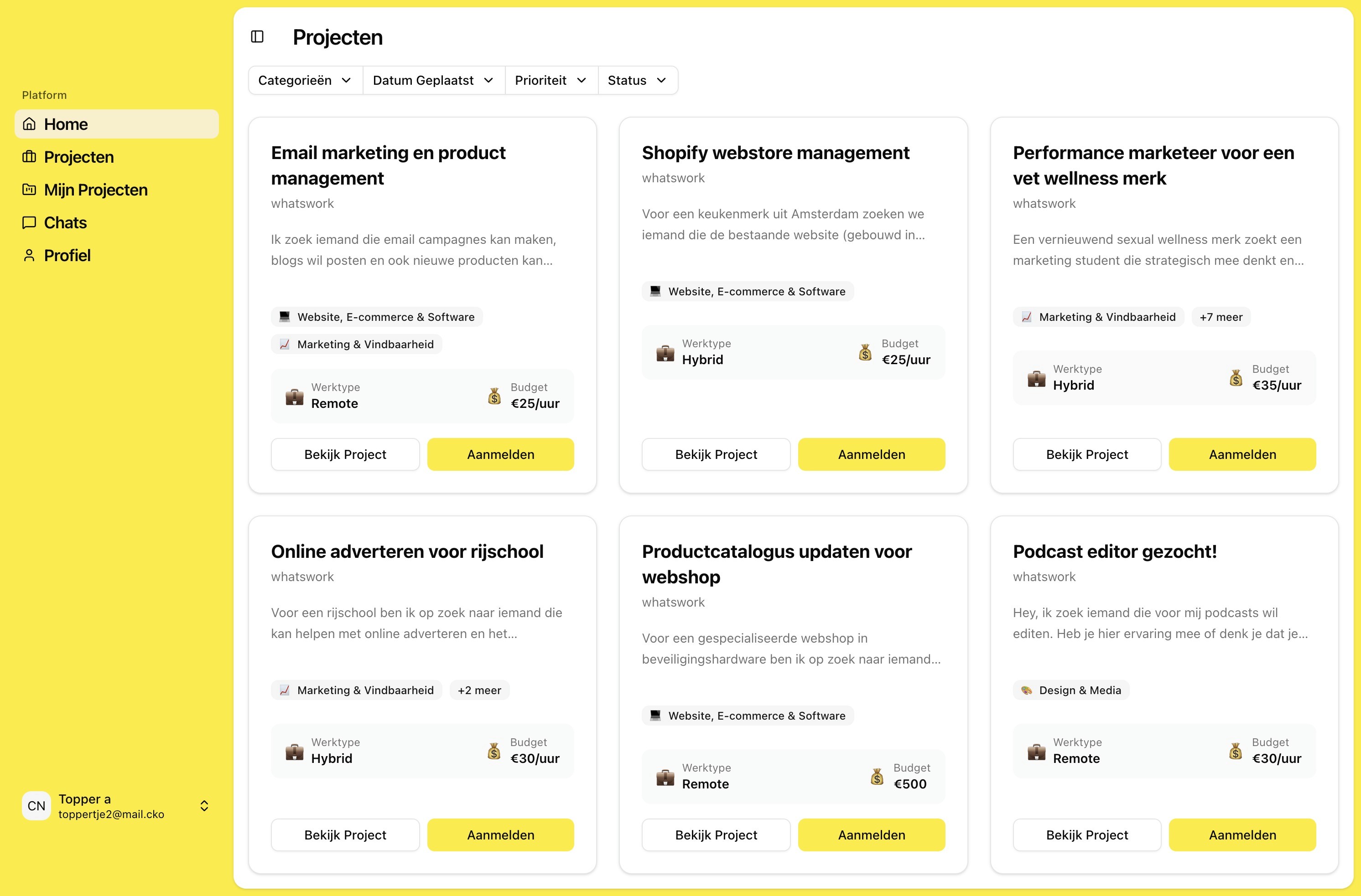 Post een klus en krijg reacties, óf zoek zelf in onze talentpool van gecontroleerde studenten.